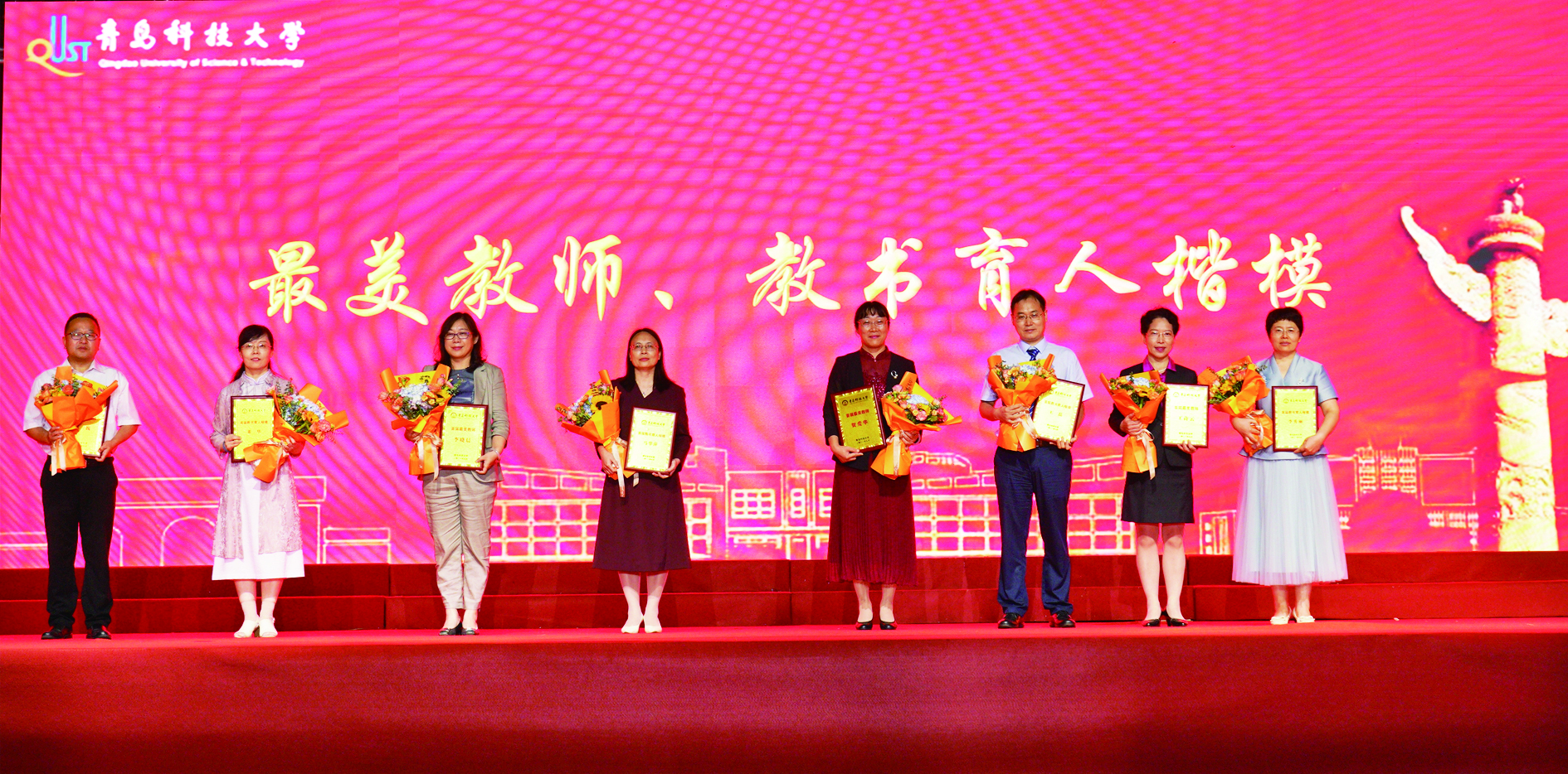 中国“橡胶战线”老兵、轮胎先进装备与关键材料国家工程实验室主任汪传生,第14届十大杰出青年、自主导航与智能控制研究所副所长邵巍,最美教师、化工学院副院长兼高密校区化工系主任王许云,分别作为获奖教师代表为新生送上祝福。