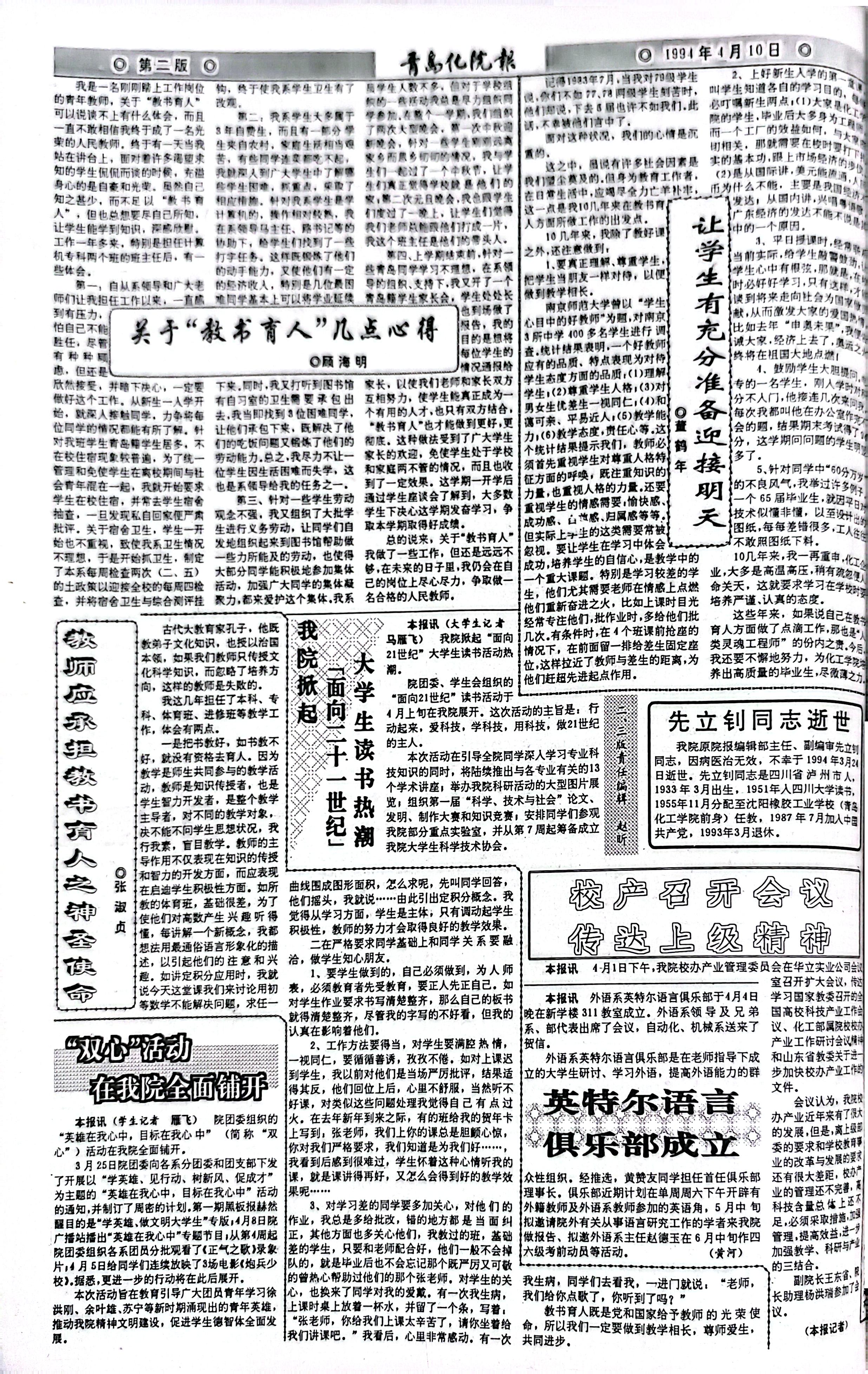 当前位置: 首页 >> 往期浏览 >> 1994年4月10日第165期