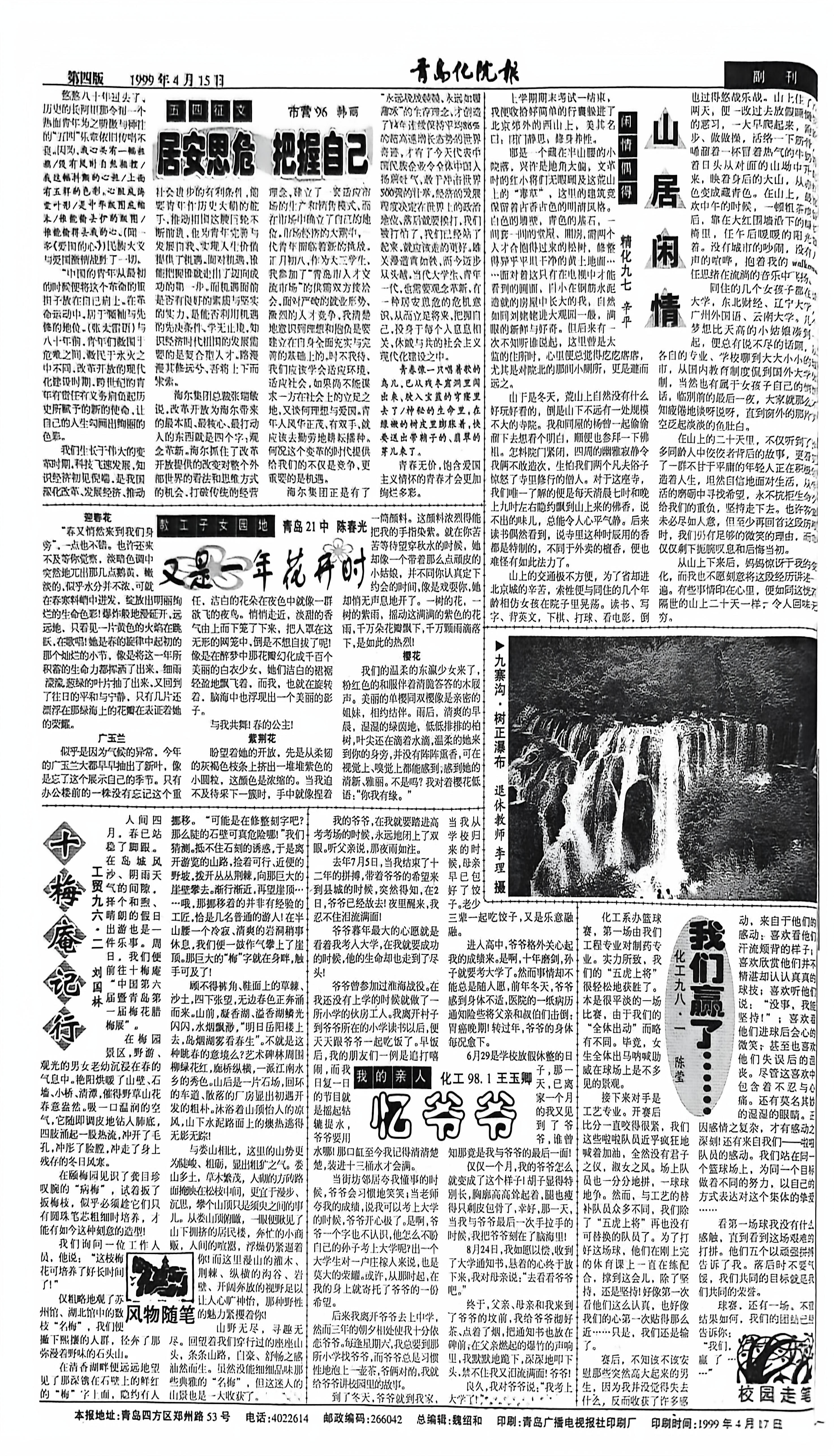 当前位置: 首页 >> 往期浏览 >> 1999年4月15日第241期