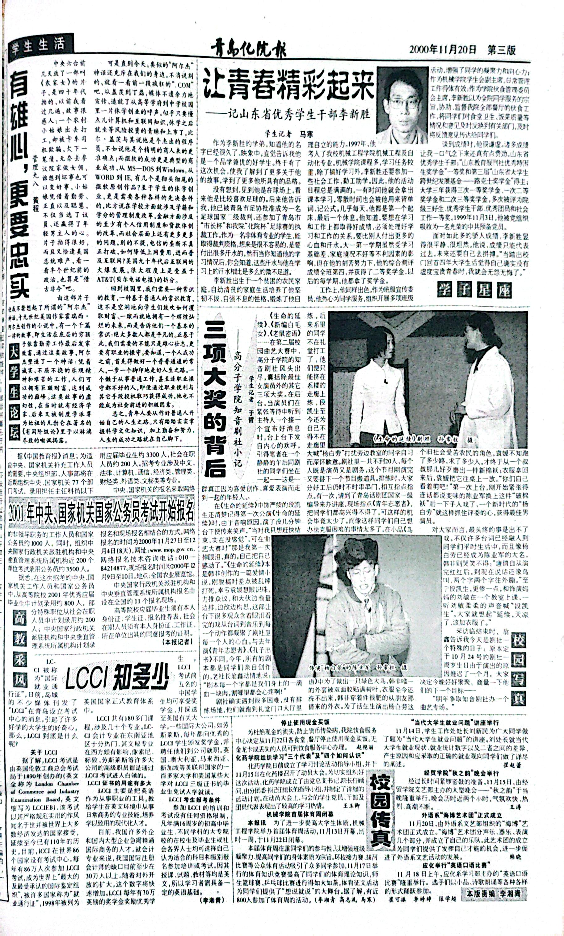 当前位置: 首页 >> 往期浏览 >> 2000年11月20日第275期