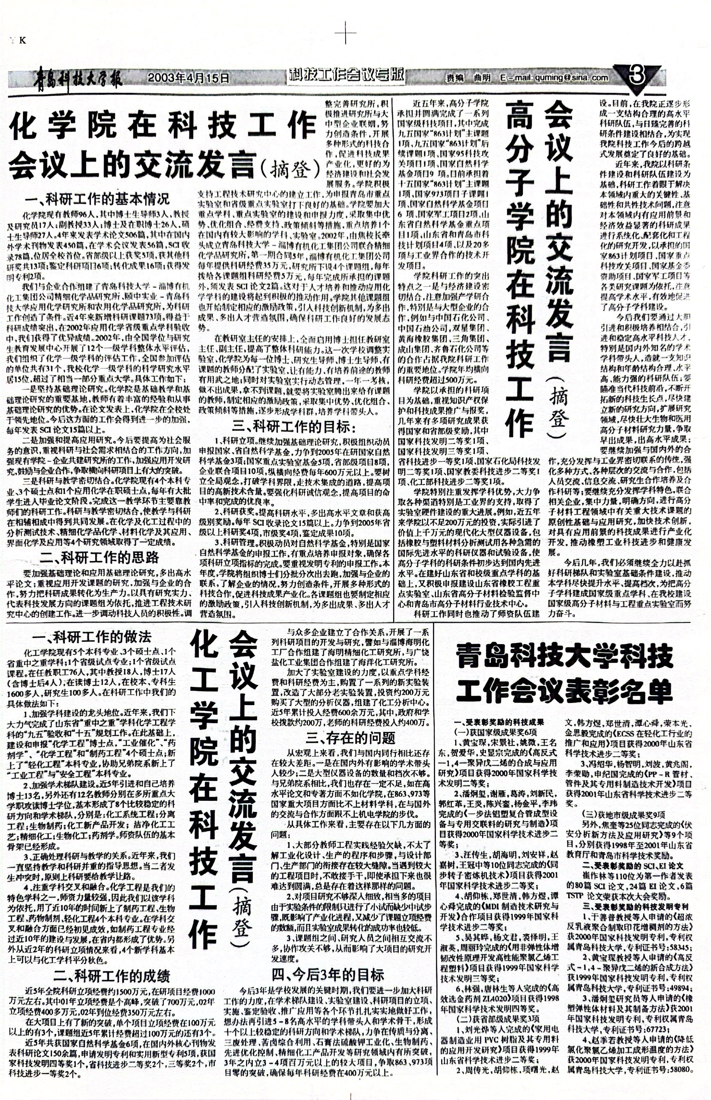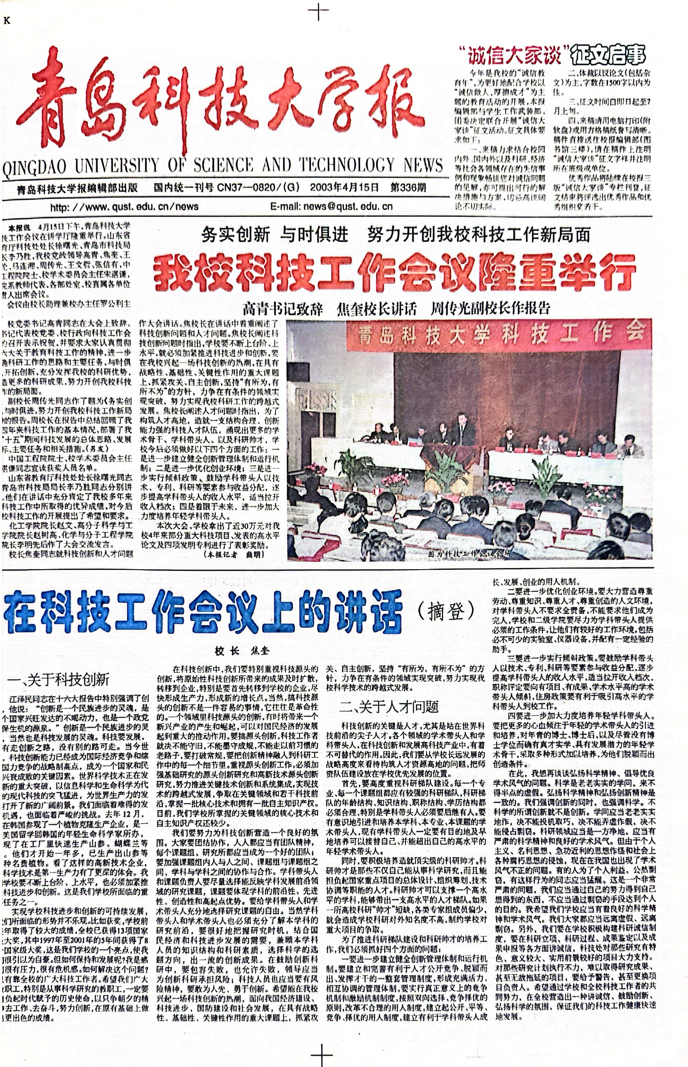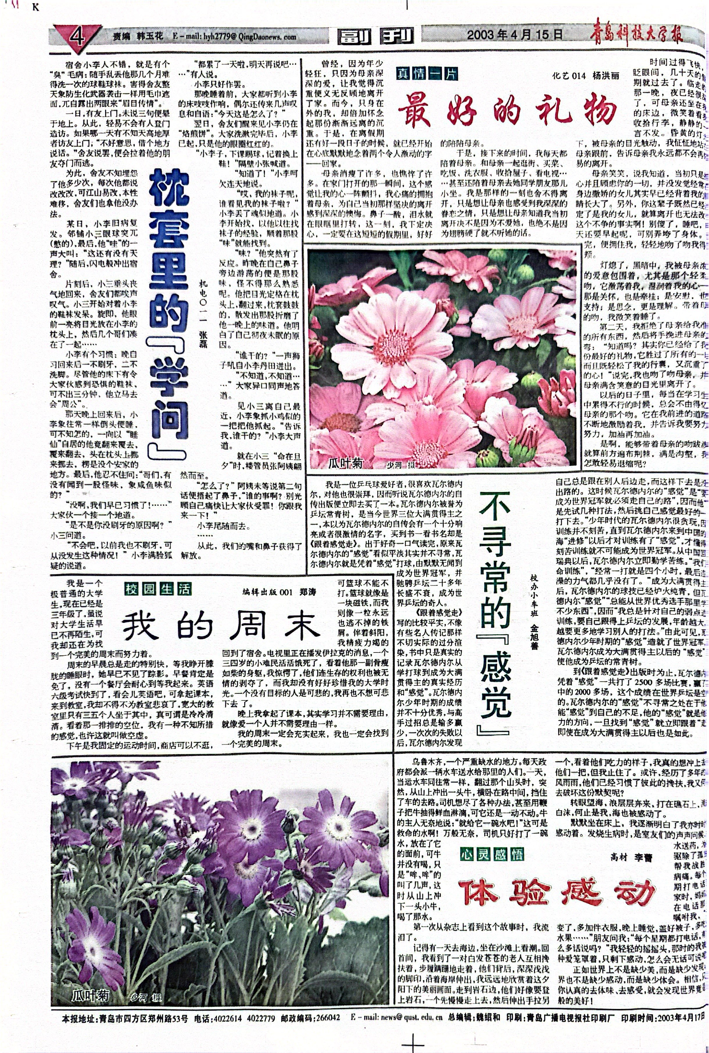 当前位置: 首页 >> 往期浏览 >> 2003年4月15日第336期