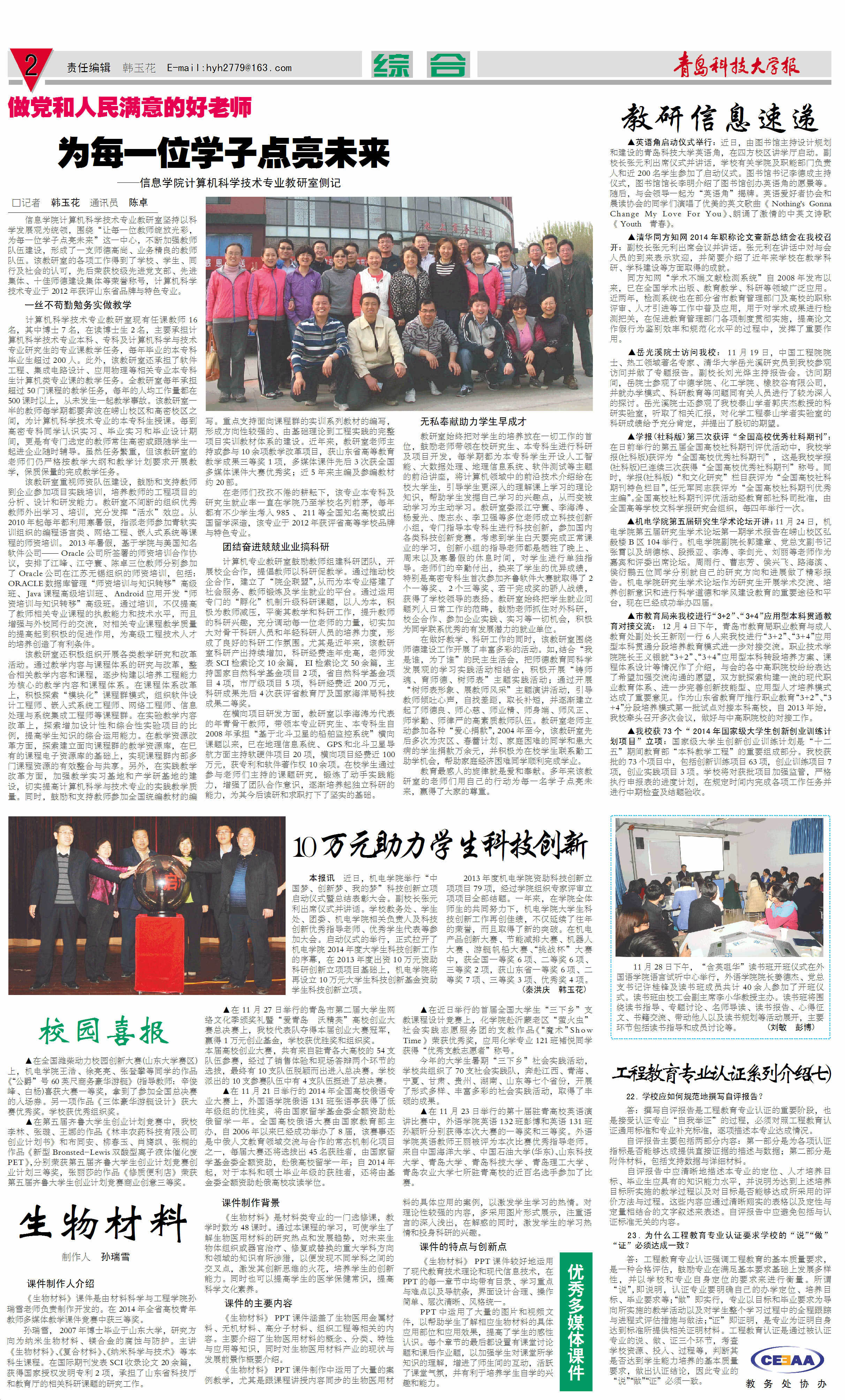 本报特稿 | 院系通讯 | 师者风范 | 科大学子 | 校友风采